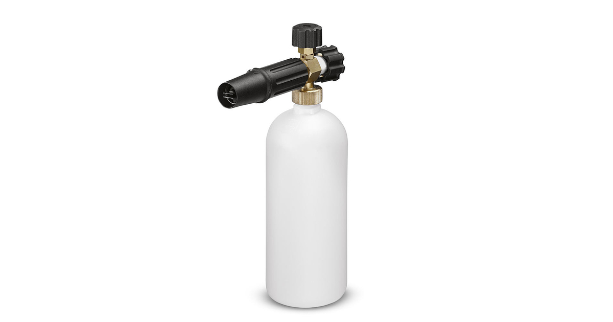 Karcher Αφροποιητής 1L 6.394-770.0: Ακροφύσιο αφρού ( κιτ αφρού ) για την εφαρμογή διαλύματος καθαρισμού. Διαθέτει δοχείο 1 λίτρου για το διάλυμα καθαρισμού, βαλβίδα για ομαλή ρύθμιση αφρού και ρυθμιστή γωνίας ψεκασμού. Διαθέτει σύνδεση με σπείρωμα M22 x 1,5 για σύνδεση σε οποιοδήποτε επαγγελματικό πιστόλι ψεκασμού Karcher.