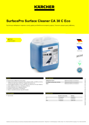 Karcher CA 30 C 5L 6.295-682.0: Συμπύκνωμα καθαρισμού επιφανειών γενικής χρήσης για δάπεδα και εσωτερικούς χώρους. Στεγνώνει γρήγορα χωρίς ραβδώσεις.