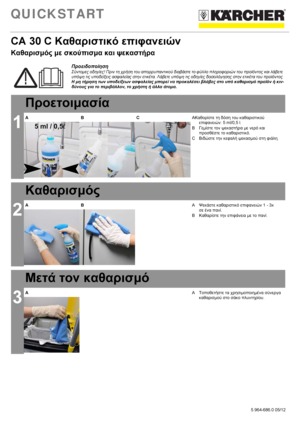 Karcher CA 30 C 1L 6.295-682.0: Συμπυκνωμένο καθαριστικό επιφανειών γενικής χρήσης για δάπεδα και εσωτερική χρήση. Στεγνώνει γρήγορα, χωρίς να αφήνει ραβδώσεις.