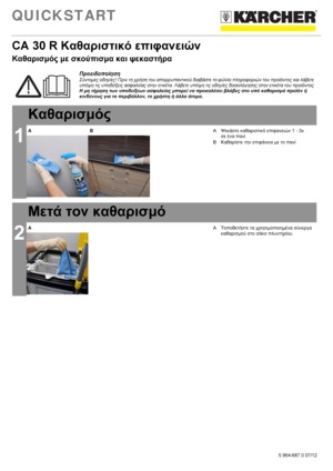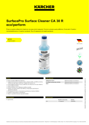 Karcher CA 30 R 500mL 6.295-686.0: Έτοιμο για χρήση καθαριστικό επιφανειών για χειρωνακτική εφαρμογή. Στεγνώνει γρήγορα χωρίς ραβδώσεις.