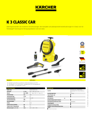 Karcher K3 Classic Car 1.676-222.0: Το συμπαγές και εξοικονόμησης χώρου πλυστικό υψηλής πίεσης K 3 Classic Car με τηλεσκοπική λαβή είναι ιδιαίτερα αποτελεσματικό για τον καθαρισμό αυτοκινήτων.