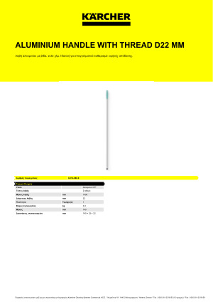 Karcher Κοντάρι αλουμινίου D22mm 9.212-088.0: Λαβή αλουμινίου με βίδα, ø 22 χλμ. Ιδανική για επαγγελματικό καθαρισμό υψηλής απόδοσης.