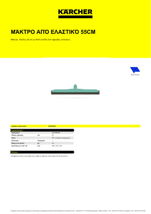 Karcher Μάκτρο δαπέδου 55cm 6.999-089.0: Ελαστικό μάκτρο Kärcher με διπλή λεπίδα από αφρώδες νεοπρένιο για χρήση με όλες τις λαβές με διάμετρο οπών μεταξύ 18 mm και 23 mm. Το μάκτρο πλάτους 55 cm, είναι ιδανικό για την απομάκρυνση μεγάλων ποσοτήτων νερού και καθαρίζεται πολύ εύκολα.