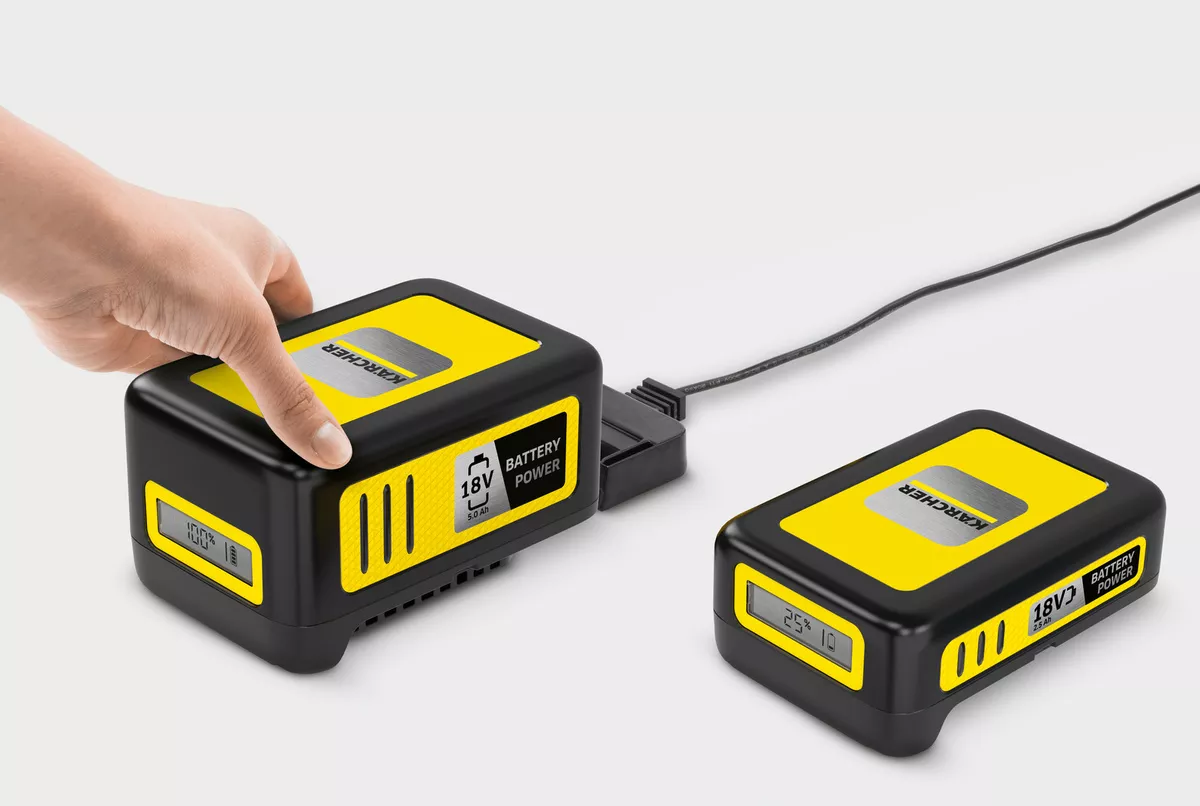 Karcher Μπαταρία 18V / 2,5Ah 2.445-034.0: Μπορείς να δεις την κατάσταση της μπαταρίας με μια ματιά χάρη στην καινοτόμο τεχνολογία πραγματικού χρόνου: Στην ενσωματωμένη οθόνη LCD εμφανίζεται η απομένουσα διάρκεια λειτουργίας, ο υπολειπόμενος χρόνος φόρτισης και το επίπεδο φόρτισης, ανάλογα με τη συσκευή που χρησιμοποιείς. Οι συστοιχίες μπαταρίας ιόντων λιθίου εξασφαλίζουν σταθερή απόδοση και αποτρέπουν την αυτο-αποφόρτιση και το «φαινόμενο μνήμης» (απώλεια της χωρητικότητας λόγω συχνής μερικής αποφόρτισης). Η ανταλλάξιμη μπαταρία ιόντων λιθίου 18 V / 2,5 Ah Battery Power είναι κατάλληλη για όλες τις συσκευές της πλατφόρμας μπαταριών 18 V Kärcher.
