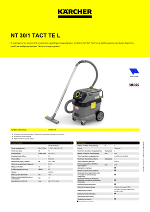 Karcher NT 30/1 Tact L 1.148-201.0 Original price was: €680.00.Η τρέχουσα τιμή είναι: €650.00.