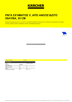 Karcher Ράγα μάκτρου 35cm 3.345-146.0: Η επαγγελματική ράγα V μήκους 35 εκατοστών επιτρέπει τη γρήγορη αντικατάσταση της ράγας, εφαρμόζει πάντα τέλεια και προσφέρει επίσης μια μεταβλητά ρυθμιζόμενη θέση ράγας. Κατασκευασμένη από υψηλής ποιότητας, ανοξείδωτο ατσάλι, η στιβαρή επαγγελματική ράγα εντυπωσιάζει επίσης με τη μεγάλη διάρκεια ζωής της. Στην παράδοση περιλαμβάνεται ένα μαλακό λάστιχο καθαρισμού. Μπορεί να χρησιμοποιηθεί με τους υαλοκαθαριστήρες της Kärcher.