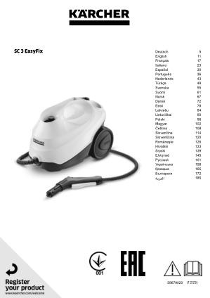 * Οι δοκιμές έχουν δείξει ότι με τον τοπικό καθαρισμό διάρκειας 30 δευτερολέπτων σε μέγιστο επίπεδο ατμού και εφόσον υπάρχει άμεση επαφή με την επιφάνεια καθαρισμού με τον καθαριστή Kärcher, το 99,999% των εγκαψιδιωμένων ιών όπως ο κορωνοϊός ή ο ιός της γρίπης (εκτός από τον ιό της Ηπατίτιδας Β) μπορεί να απομακρυνθεί από κοινές λείες σκληρές επιφάνειες του νοικοκυριού (μικρόβιο υπό δοκιμή: Τροποποιημένος ιός Vaccinia-Ankara).