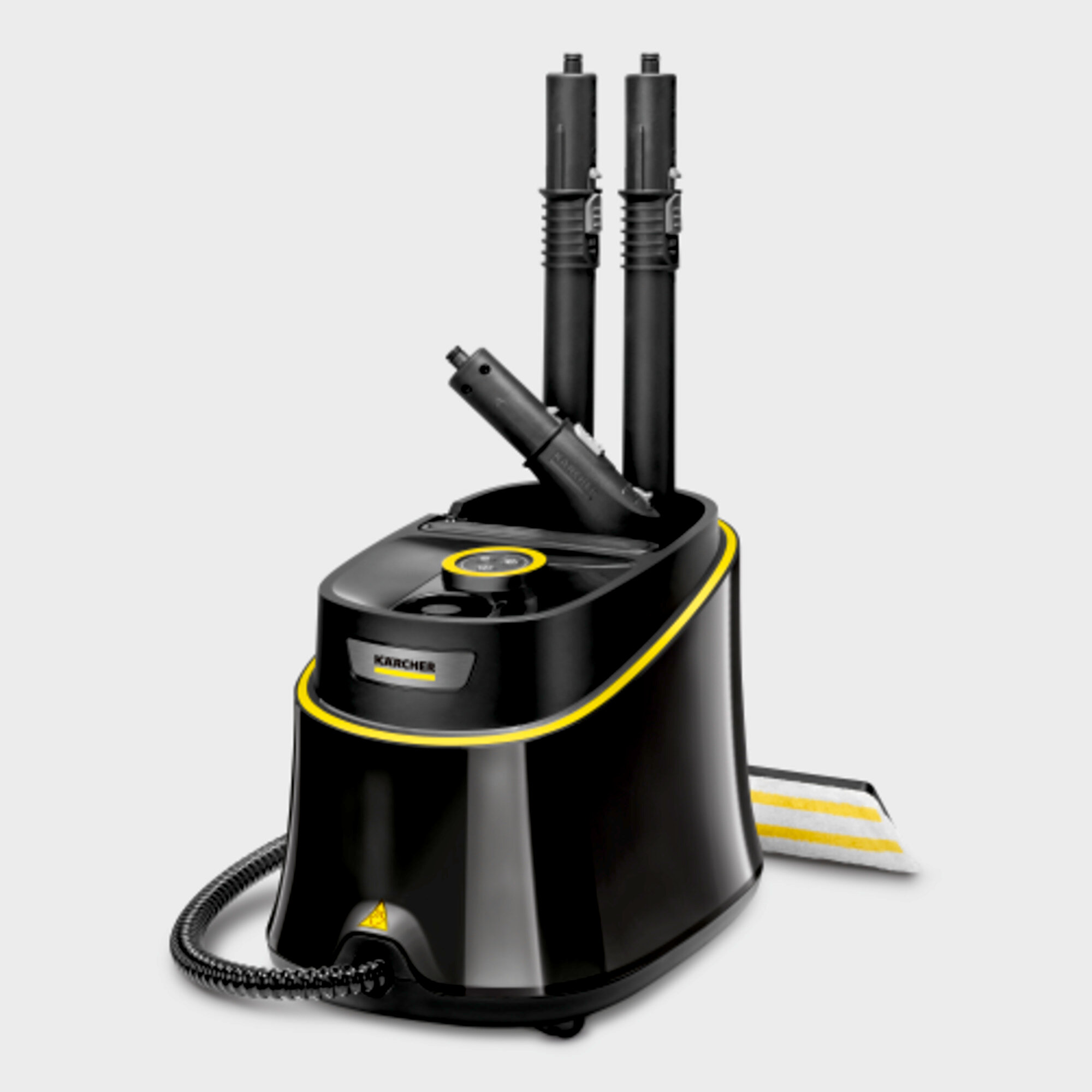 * Οι δοκιμές έχουν δείξει ότι με τον τοπικό καθαρισμό διάρκειας 30 δευτερολέπτων σε μέγιστο επίπεδο ατμού και εφόσον υπάρχει άμεση επαφή με την επιφάνεια καθαρισμού με τον καθαριστή Kärcher, το 99,999% των εγκαψιδιωμένων ιών όπως ο κορωνοϊός ή ο ιός της γρίπης (εκτός από τον ιό της Ηπατίτιδας Β) μπορεί να απομακρυνθεί από κοινές λείες σκληρές επιφάνειες του νοικοκυριού (μικρόβιο υπό δοκιμή: Τροποποιημένος ιός Vaccinia-Ankara).