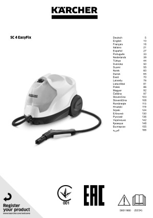 * Οι δοκιμές έχουν δείξει ότι με τον τοπικό καθαρισμό διάρκειας 30 δευτερολέπτων σε μέγιστο επίπεδο ατμού και εφόσον υπάρχει άμεση επαφή με την επιφάνεια καθαρισμού με τον καθαριστή Kärcher, το 99,999% των εγκαψιδιωμένων ιών όπως ο κορωνοϊός ή ο ιός της γρίπης (εκτός από τον ιό της Ηπατίτιδας Β) μπορεί να απομακρυνθεί από κοινές λείες σκληρές επιφάνειες του νοικοκυριού (μικρόβιο υπό δοκιμή: Τροποποιημένος ιός Vaccinia-Ankara).