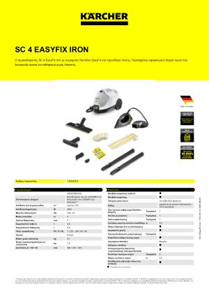 ** Με τον σχολαστικό καθαρισμό με τον ατμοκαθαριστή Kärcher, θα θανατωθεί το 99,99% όλων των κοινών βακτηρίων του νοικοκυριού από κοινές λείες σκληρές επιφάνειες του νοικοκυριού, εφόσον η ταχύτητα καθαρισμού είναι 30 cm/s σε μέγιστο επίπεδο ατμού και εφόσον υπάρχει άμεση επαφή με την επιφάνεια καθαρισμού (μικρόβιο υπό δοκιμή: Enterococcus hirae).