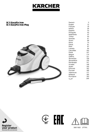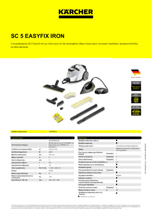 * Οι δοκιμές έχουν δείξει ότι με τον τοπικό καθαρισμό διάρκειας 30 δευτερολέπτων σε μέγιστο επίπεδο ατμού και εφόσον υπάρχει άμεση επαφή με την επιφάνεια καθαρισμού με τον καθαριστή Kärcher, το 99,999% των εγκαψιδιωμένων ιών όπως ο κορωνοϊός ή ο ιός της γρίπης (εκτός από τον ιό της Ηπατίτιδας Β) μπορεί να απομακρυνθεί από κοινές λείες σκληρές επιφάνειες του νοικοκυριού (μικρόβιο υπό δοκιμή: Τροποποιημένος ιός Vaccinia-Ankara).