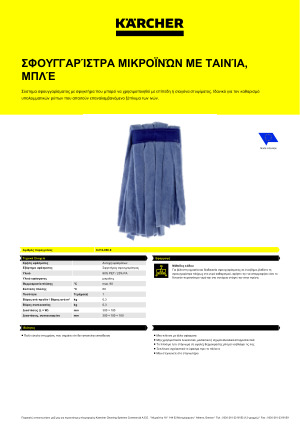 Karcher Σφουγγαρίστρα μικροϊνών με ταινία 9.212-066.0: Σύστημα σφουγγαρίσματος με σφιγκτήρα που μπορεί να χρησιμοποιηθεί με επίπεδη ή σιαγόνα στυψίματος. Ιδανικό για τον καθαρισμό υπολειμματικών ρύπων που απαιτούν επαναλαμβανόμενο ξέπλυμα των ινών.