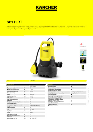 Karcher SP1 Dirt 1.645-500.0: Στιβαρή και αξιόπιστη: η SP 1 Dirt βυθιζόμενη αντλία με χωρητικότητα 5.500l/h και διακόπτη πλωτήρα είναι η συμπαγής εισαγωγικού επιπέδου αντλία για άντληση και κυκλοφορία ακάθαρτου νερού.