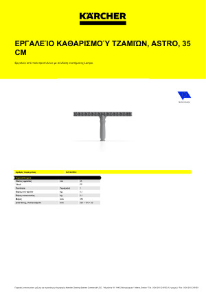Karcher Βάση Astro 9.212-058.0: Η βάση πανιού  Astro, 35 cm, είναι ένα ανθεκτικό σύστημα καθαρισμού τζαμιών με φλις και σπάτουλα. Ιδανική για τον παραδοσιακό καθαρισμό τζαμιών με εργονομικό χειρισμό.