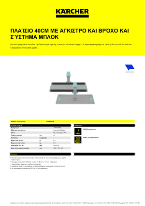 Karcher Βάση σαρώθρου 40cm 6.999-272.0: Πλαστικό πλαίσιο Kärcher με αγκίστρι και βρόχο με σύστημα μπλοκ. Το στήριγμα πλάτους 40 cm με συνδετήρα με άγκιστρο και βρόχο είναι ιδανικό για χρήση με όλες τις λαβές με διάμετρο οπής μεταξύ 18 mm και 23 mm, όπως οι αλουμινένιες και τηλεσκοπικές λαβές μας.
