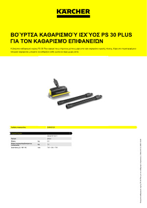 Karcher Βούρτσα P30 Plus 2.644-212.0: Η βούρτσα καθαρισμού ισχύος PS 30 Plus αφαιρεί τους επίμονους ρύπους χάρη στα τρία ακροφύσια υψηλής πίεσης. Χάρη στο περιστρεφόμενο πλευρικό ακροφύσιο, μπορείτε να καθαρίζετε κάθε γωνία και άκρη χωρίς κόπο.
